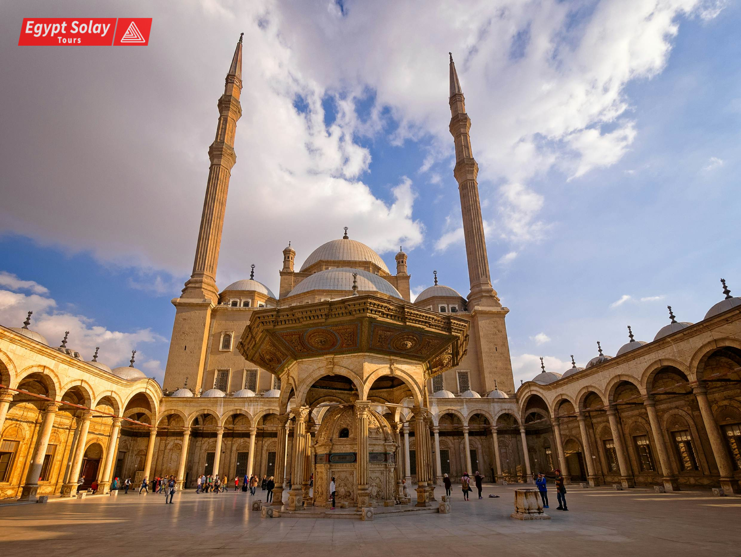 Our Egypt Solay Tours will pick you up from your hotel in air-conditioned vehicle to go to the Egyptian museum, you’ll see the spectacular treasures of King Tutankhamen and the extensive collection of Egyptian artifacts covering 5,000 years. Then we move on to Coptic Cairo to visit the "Hanging Church" which is the oldest church in Egypt. Then a visit to "Saint Sergius and Bacchus Church" where the holy family stayed in for 3 months during their journey to Egypt. And the "Jewish Synagogue of Ben Ezra" the oldest Synagogue in Egypt. Then you carry on visiting The Citadel of Saladin which was built in the 12th century, and you will be able to visit there the alabaster mosque of Mohamed Ali.   After your fantastic tour you will be transferred back to your hotel to stay overnight.