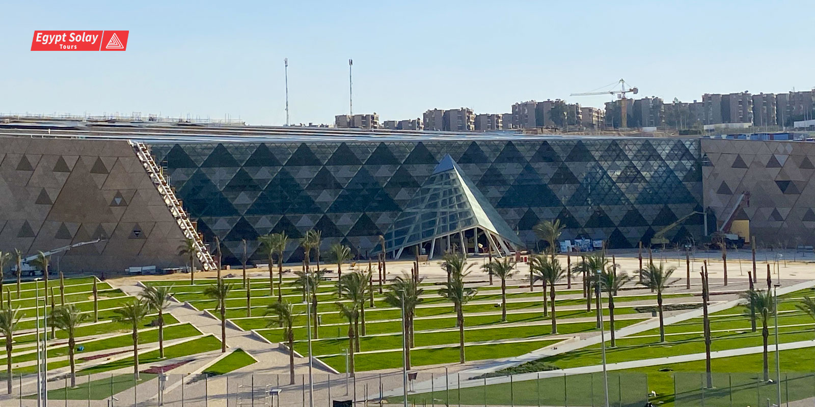Our Egypt Solay Tours tour guide will meet and transfer you from your hotel in Cairo or Giza to Giza Plateau to visit the splendid 3 Pyramids of Kings Cheops, Chephren, and Mykerinos, followed by a visit to the Great Sphinx (the Guardian of Necropolis), which dates back to the time of Chephren. The Great Pyramid of King Cheops is the only wonder of the seven wonders of the ancient world which still remains until today and back to 2560 B.C. Enjoy the camel ride experience for roughly 15 minutes in the panoramic area which is the highest point in Giza Plateau, you will enjoy the view there and you will be able to take very nice pictures over there as well. Then proceed to visit the GEM Grand Egyptian Museum, the biggest museum in the whole world. It was built on a total area 50.000 square meters. The museum will host over 100.000 artifacts from the ancient Egyptian time including the complete collections of King Tutankhamun. You will be able to see many pieces are displayed for the first time. You will watch Tutankhamun Interactive Exhibition, the exhibition will present the story of King Tutankhamun in a new and different creative style. Through this interactive experience, and using the latest digital projectors, you will see yourself in the life of the legendary King Tutankhamun, and you will embark on a wonderful audio-visual journey spanning more than 3400 years of history. After your fantastic tour you will be transferred back to your hotel.